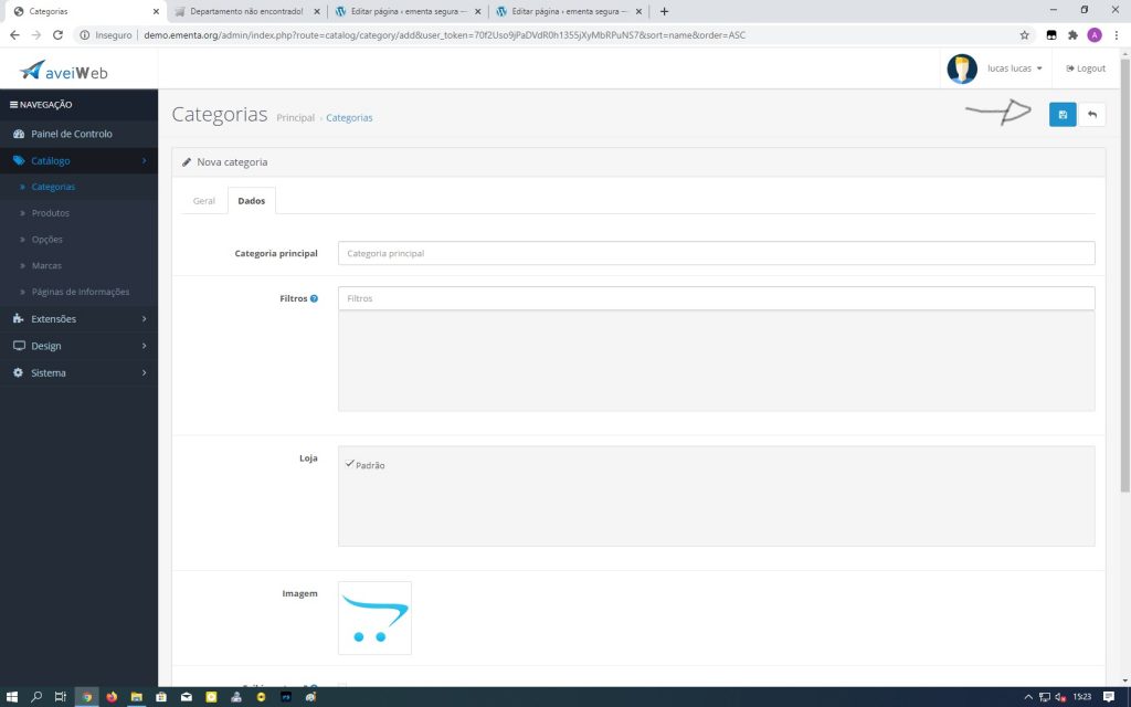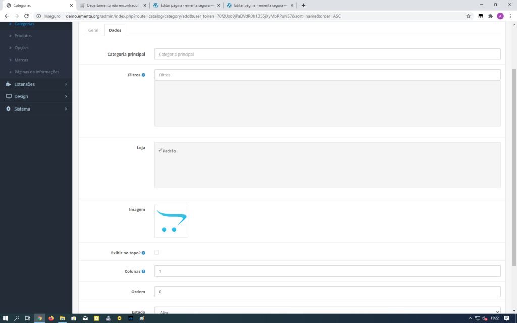 5- Preencher os espaços necessários: Nome do Produto, Descrição, Meta título, e se quiser pode associar a uma categoria principal, pode exibir no topo e mudar a ordem;